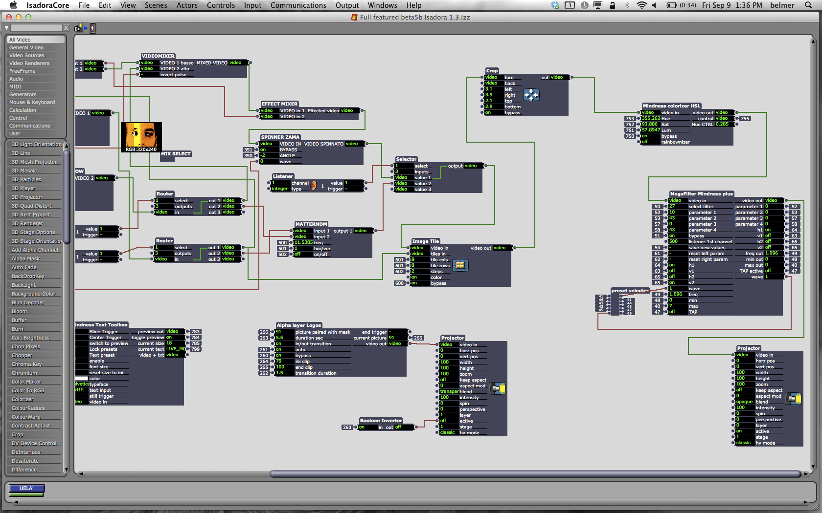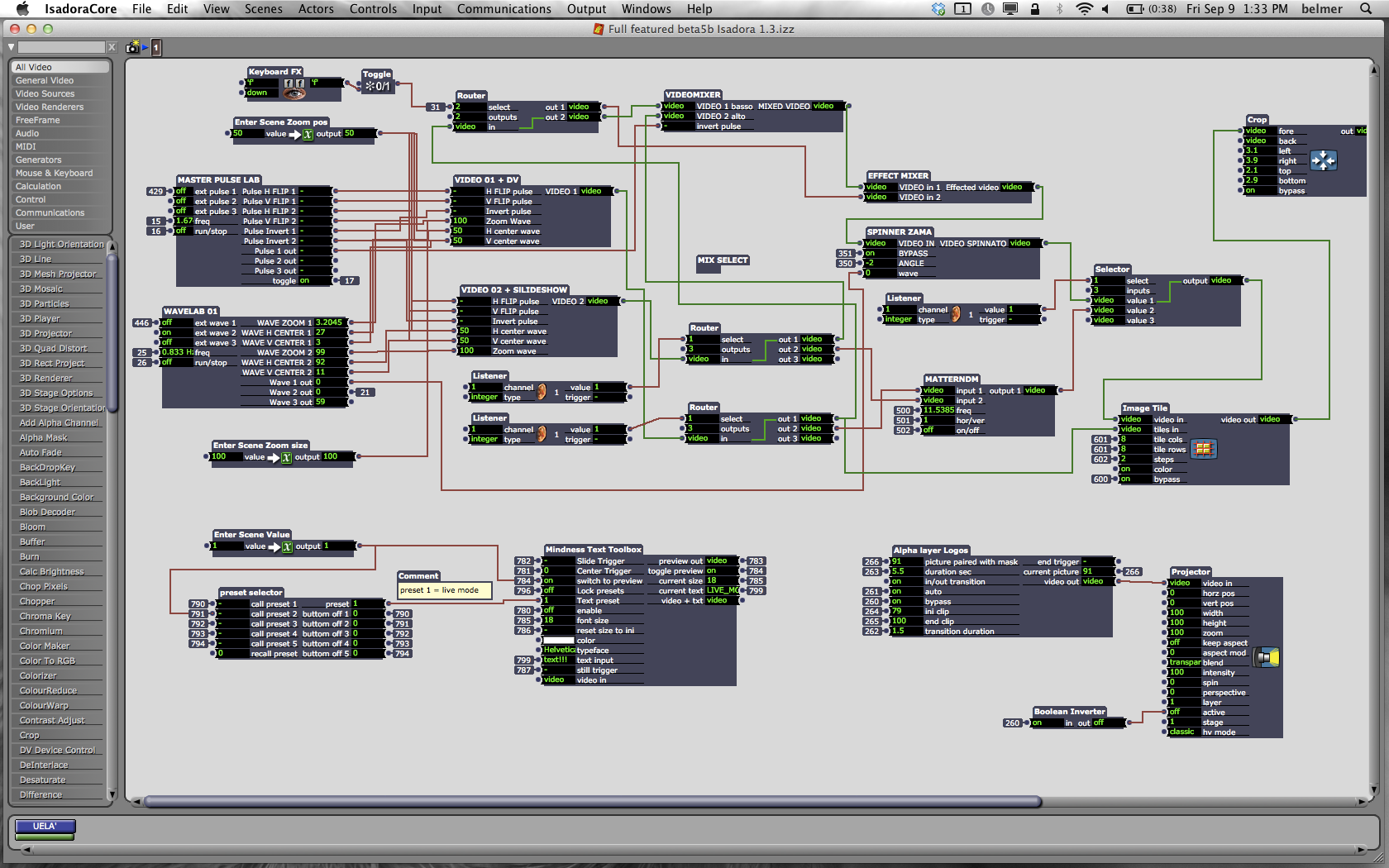 I developed many animation loops in Flash. I also video-recorded urban themes or textures to create footage for masks or live overlaying. Due to the computer's processing limitations, the videos had to be used at size 320 X 240px.